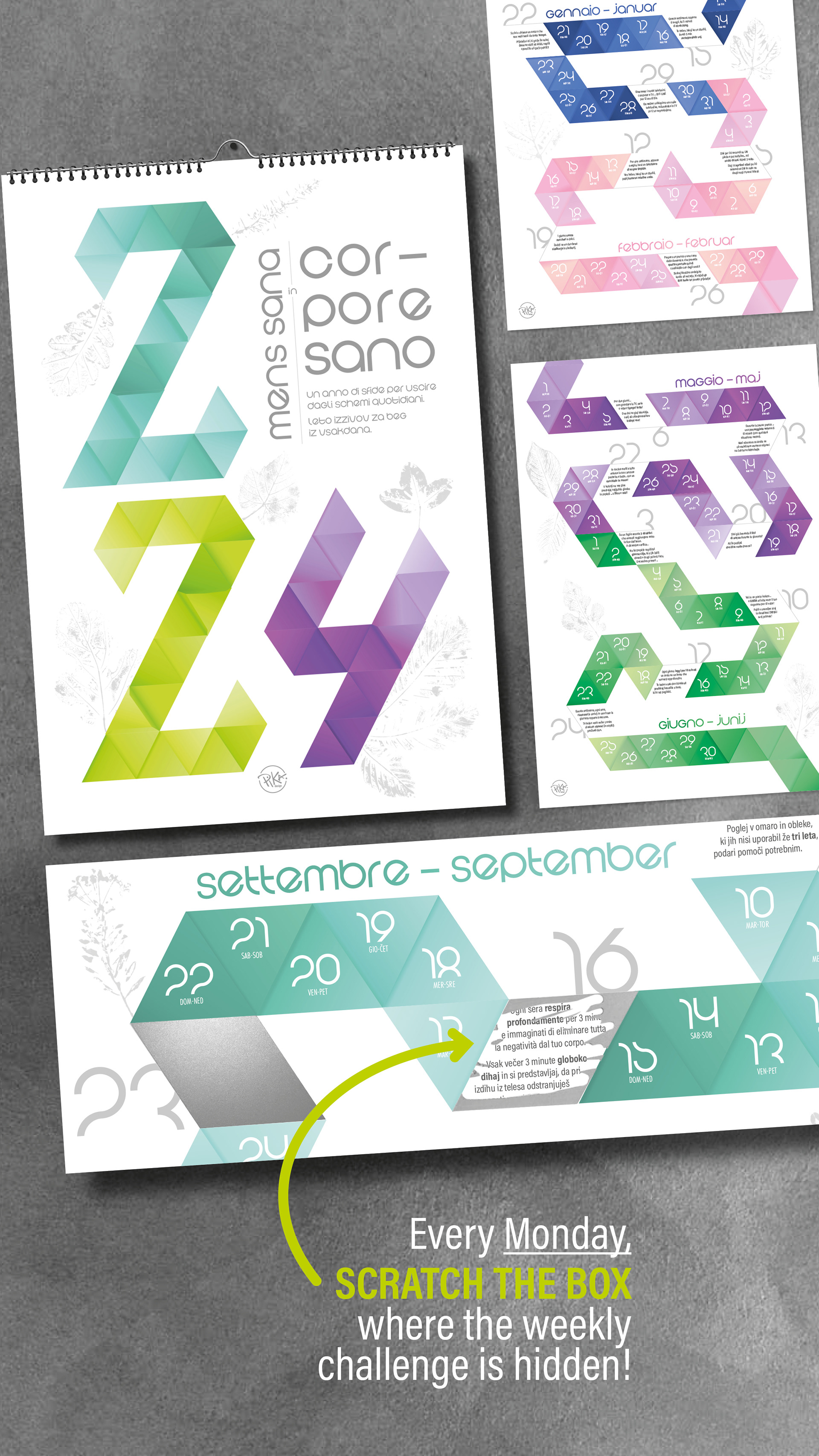 Each week hides a new challenge behind a scratch-off surface—52 in total—designed to spark curiosity and reflection. Bilingual in Slovenian and Italian, the calendar is inclusive and regionally rooted.