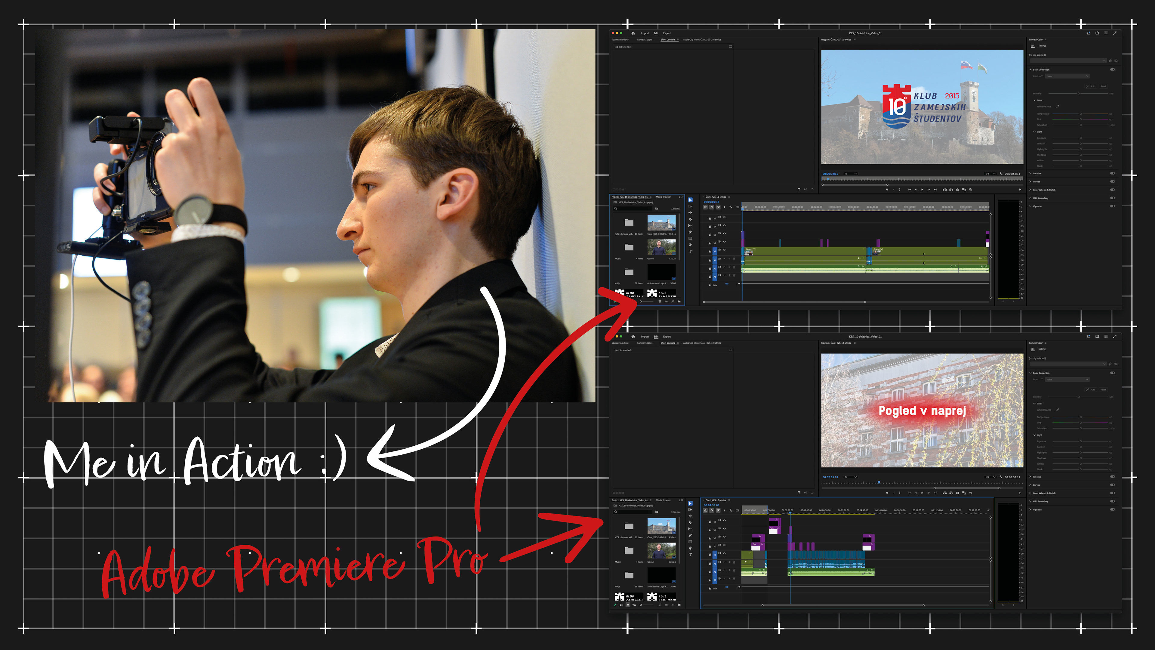 Video Editor & Motion Designer KZŠ – Klub Zamejski Študentov 10th Anniversary Event – April 1st, 2025 As a member of KZŠ, I contributed to the creation of multimedia content for the association’s 10th anniversary celebration. My role involved: Assisting in the filming of video content presented during the event Editing video materials for the official anniversary program Animating the KZŠ logo for use in opening sequences and video transitions Collaborating with other team members to ensure consistent visual storytelling This project strengthened my skills in video production, editing, and motion graphics for live events.
